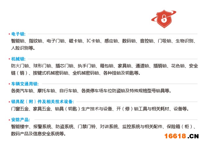 歡迎參加2017上海國際鎖具安防產(chǎn)品展覽會,本屆展會以‘精制鎖具、安贏未來’為主題,聚焦全球鎖具產(chǎn)品創(chuàng)新、加快鎖具行業(yè)發(fā)展,推動傳統(tǒng)鎖具智能化升級,為了更好地配合展會交易、技術(shù)交流合作與推廣的辦展目的,進(jìn)一步豐富上海國際鎖具安防展會的配套活動,主辦方精心組織了一系列重要活動,以前沿視角、科技驅(qū)動為切入點(diǎn),搭建交流合作平臺,本屆展會的全面推廣策略,更由中國輻射至亞太地區(qū)及全球?qū)I(yè)買家,讓展商更能有效開拓中國以至海外國際市場,加強(qiáng)與目標(biāo)買家接洽的機(jī)會。輝德展覽憑借在國際會展組織的豐富經(jīng)驗,整合產(chǎn)業(yè)資源,為企業(yè)提供一個國際化、專業(yè)化、高品質(zhì)的交流、洽談、交易與合作的最佳平臺。
