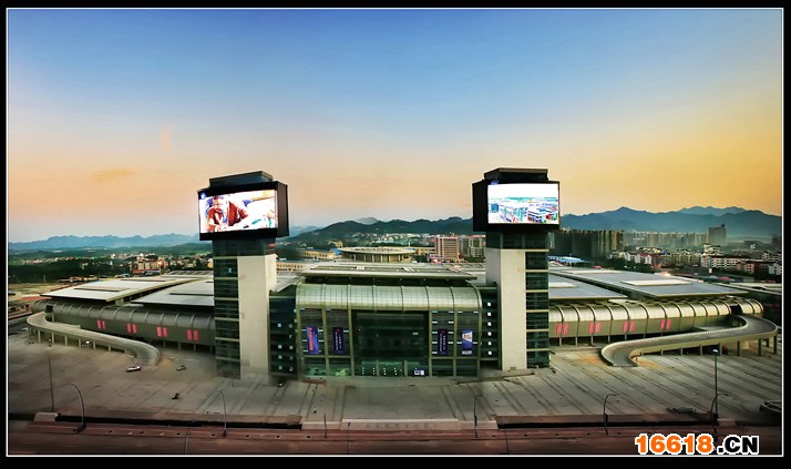 (四)廣場:廣場總面積10萬平方米,設有停車泊位1800個,以及能滿足擴大辦展需要,可臨時利用搭建的室外展位1500個。廣場四周是由寬1米、長1600米珊瑚植物組成的綠色圍墻,既環保又襯托主建筑的雄偉。