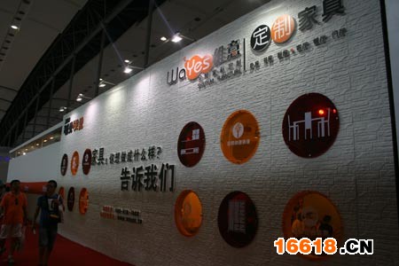 維意家具的背景墻是其展位最大的亮點。背景墻采用白色浮雕作為底色,中央的標(biāo)語和兩側(cè)如同按鈕的宣傳畫看上去非常醒目,又讓人感覺十分親切。