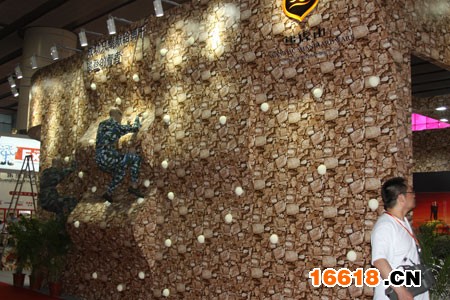 “成功只奉獻給勇于攀登的智者”,這句話無疑是熊虎山公司的展位最想表達的理念。那么,還有什么比一幅仿真的攀巖圖更能形象的表達這一理念呢?