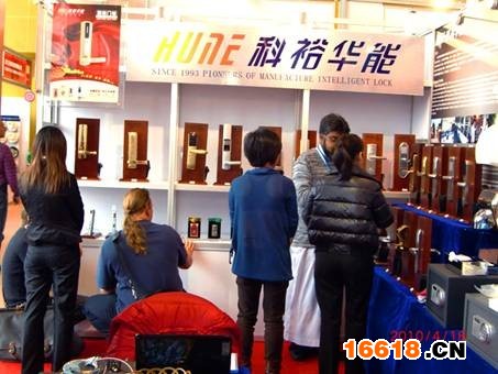在展會現場,科裕華能的工作人員們在給外國友人介紹一些公司今年最新產品的同時也向他們展示了由科裕華能自行制造的“世界第一大電子鎖”,這把門鎖高1.88米,比一個正常的男子還要高,到場的人無不對這“巨無霸”門鎖感到好奇和驚訝。(圖二)