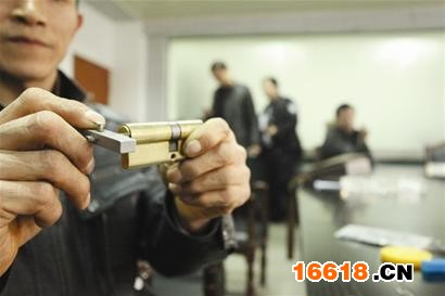 當著記者的面,開鎖專家僅用十多秒就打開了一個普通的鎖芯。