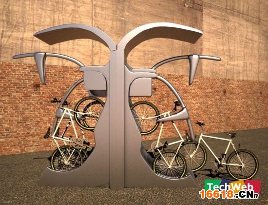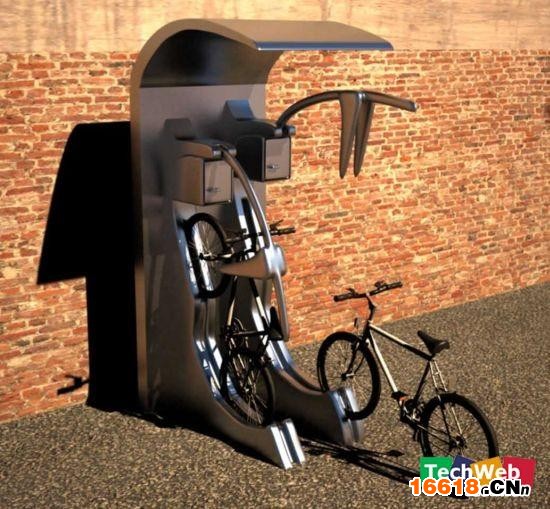 話說多了,言歸正傳,剛才在網上看到一種概念自行車鎖,相信如果有了這種車鎖,自行車被盜的幾率將大大減小。這種車鎖帶有一個可以轉動的金屬臂,一端沿軸固定在一個金屬制鎖體上,把自行車向上推起,兩個車輪就會陷入厚實的金屬凹槽內,放下金屬臂,就會把自行車牢牢“壓”在凹槽內,同時,金屬臂的一端會把車座位牢牢的扣住,這樣,不僅保證整車不會被盜,就是想要偷走車輪或者車座也是不可能的事情。