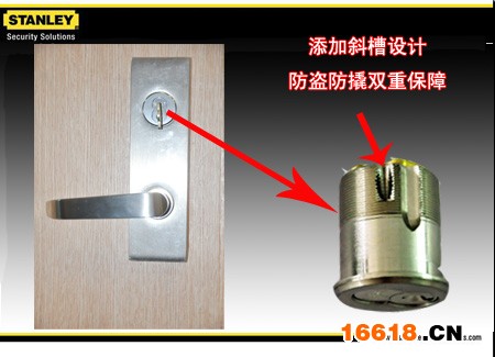 史丹利BEST系列鎖添加了一個斜槽設計,安裝時螺絲釘會頂住斜槽,提供雙重防撬保障。