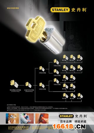 史丹利BEST鎖系列實現了鑰匙權限的分級管理,十分適合大型辦公樓使用。鑰匙權限分級系統由“總組主控鑰匙”、 “分組主控鑰匙”和“單開鑰匙”幾個層級組成。以大型辦公樓為例,老板掌控“總組主控鑰匙”可打開辦公大樓的所有房間,財務經理、市場部經理、行政經理等掌握“分組主控鑰匙”可分別打開各自部門的所有房間,普通職員拿“單開鑰匙”則只可打開自己的房間。