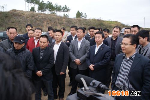 考察團一行先行深入寧都新中勝產業基地實地對寧都縣產業布局,特別是擬規劃建設的門業產業區的地形概貌、基礎設施建設進行了認真考察。中共寧都縣縣委書記王四華陪同考察團實地考察,并就產業區規劃及建設等問題回答了考察團的提問。