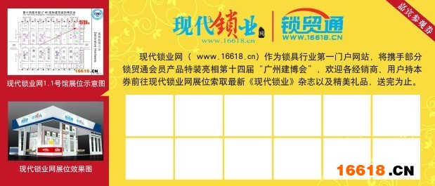 ·現代鎖業網將制作本屆展覽會的專題報道,持續對參展企業進行展示和宣傳介紹。