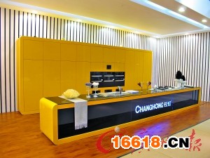 長虹櫥柜今年展出的新型餐廚一體化櫥柜。