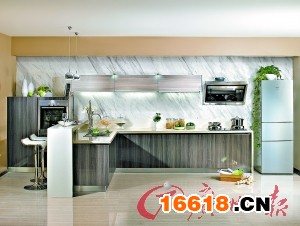新材質的運用也是今年廚房展上的一個特色。在威法·西門子今年推出的Fashion系列中,一款名為“希望之光”則選用六面木紋亞克力門板,它的優點比普通五面烤漆門板更耐用、更易清潔和保養,同時還克服了色差及環境因素造成的變色,表面木紋足以以假亂真。康寶在今年新品研發上也有不少革新,比如竹藝產品,使用PE漆,最值得關注的是首次使用微精玻璃,僅僅2毫米厚,但硬度強度則超過了傳統6毫米厚的玻璃,而可塑性非常強,適合更重彎折造型。