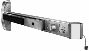 針對樓梯間門和外圍疏散通道,若上述門點又同時出現在高保安的區域時,則ASSA ABLOY(亞薩合萊)新型的出門延時型雙向電控逃生裝置(圖3)將是最佳的選擇。其工作特點是,在有意外發生時,人員可推動逃生裝置,但門不會被立即打開,此時會有信號反饋給中控室,由安保人員來確認該人員是否可以放行。另一方面,在延時15~30秒后(具體時間可調),若中控室人員沒有給出確認回饋,逃生裝置也會自動打開,從而保證相關人員也可撤離。顯然,這既可以解決日常使用過程中的門禁安保要求,又可以在緊急情況發生時(如火災),解決人員疏散逃生的要求,實現了安防控制和消防系統的有效結合及聯動。另外,亞薩合萊最新推出的帶LED 燈顯示的電控逃生裝置(圖4),更是考慮到人員即便是處于黑暗的環境,也能在LED的指引下,迅速逃生。 電控逃生裝置主要應用在一些重點區域的防火逃生門上,并且在某些特殊場所的應用更是專業設計師的必須要求,如核電站內一些核島外圍的逃生通道。