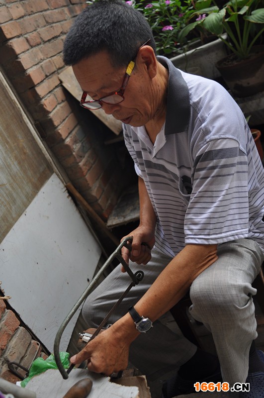 劉寶勝在制作鎖具