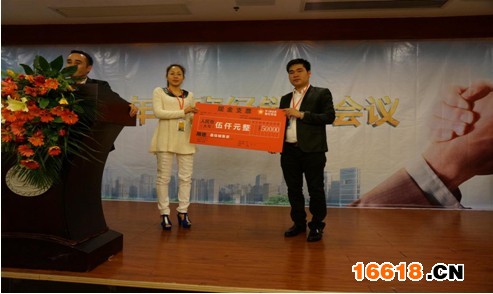 總經(jīng)理王星翔為優(yōu)秀經(jīng)銷商頒獎