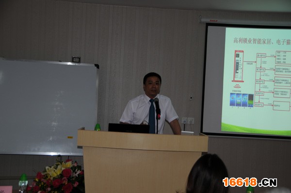 中山市高利鎖業(yè)股份有限公司董事長吳均毅在招商會上演講
