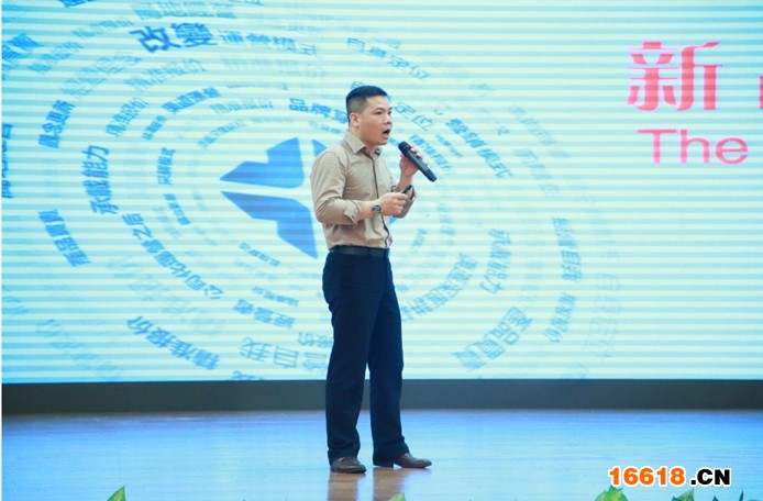 圖:雅潔五金產(chǎn)品部長曹肇強(qiáng)在新品鑒賞會上演講