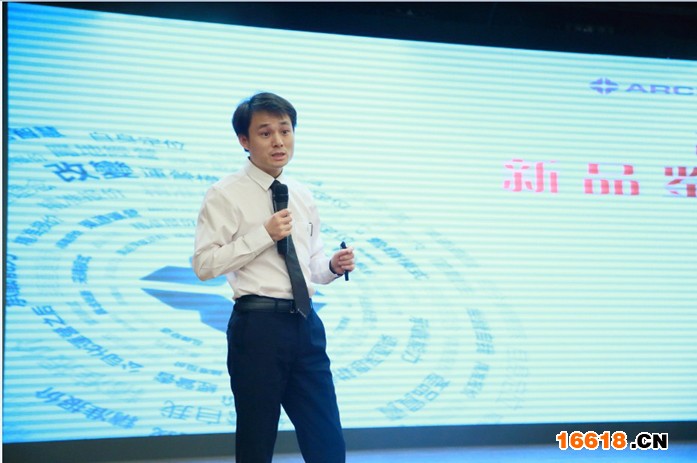 圖:雅潔五金技術(shù)副總經(jīng)理易小明在新品鑒賞會上發(fā)言