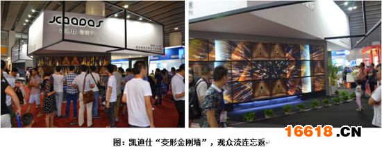 凱迪仕采用全球首創高科技投影“變形金剛墻”進行產品展示,投影畫面與實體產品完美虛實結合,二十四面投影墻伴隨音樂節奏不斷炫酷變幻翻轉,“變”出一幅幅的夢幻般的組合立體場景,觀眾被這些精妙絕倫的場景所震撼,紛紛駐足,一遍又一遍的品味著凱迪仕帶來的高科視覺盛宴,流連忘返。