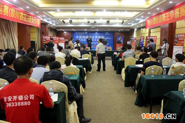 圖為中國超級鎖王爭霸巡回賽泉州賽區現場 帶著疑惑,記者專門來到中國超級鎖王爭霸巡回賽(泉州賽區)比賽現場一探究竟。比賽現場人滿為患,來自全國各地的鎖匠聞風而來,紛紛報名挑戰玥瑪保險柜,比賽相當激烈。令人遺憾的是,此次中國超級鎖王爭霸賽依然無人能在限定時間內成功技術開啟玥瑪保險柜。眾參賽者再次與豪車巨獎失之交臂。