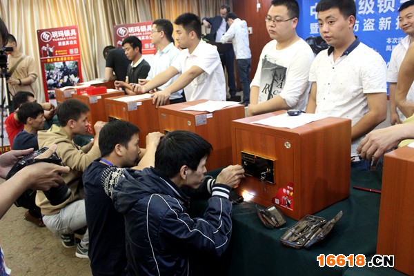 圖為泉州鎖匠們在開鎖 擂主“鎖王”李善德表示,之所以歷年來鍥而不舍地在全國各地舉辦中國超級鎖王爭霸賽,一方面是為了驗證玥瑪產品技術是否過關,是否能夠提供令民眾安全放心的產品;另一方面是因為求賢若渴。同時,舉辦中國超級鎖王爭霸賽更重要的原因是為了宣傳普及鎖具安全防盜知識。小偷的技術日益在提升,市民的防盜意識也需要繼續提高。 據不完全統計,7成室內盜竊案皆從鎖芯入手,其中技術開鎖所致占四成。很多家庭仍然在使用A級鎖等安全系數不高的鎖具,連家中的保險柜也存在著安全隱患。就近日發生的“4.10哈爾濱黃金大劫案”而言,被盜的兩個保險柜便被自學開鎖術的犯罪嫌疑人張某技術開啟。金店用來放置黃金的保險柜尚且如此,更何況普通市民家中的保險柜?
