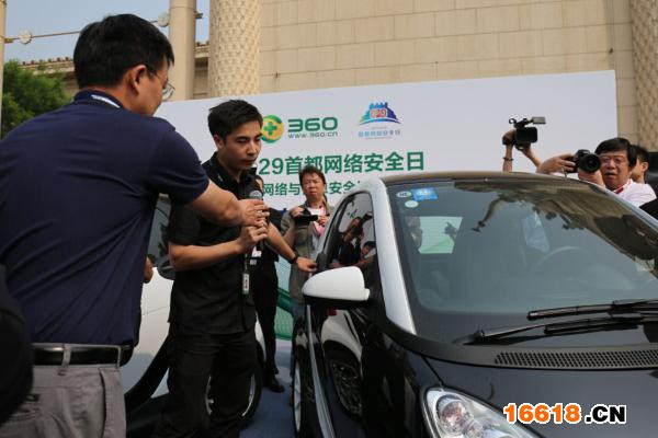 安全日現場,網絡安全專家成功破解兩輛轎車車鎖。 千龍網記者 王璟玥 攝