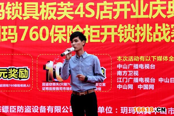 圖為玥瑪760保險柜負責人李浩飛致辭