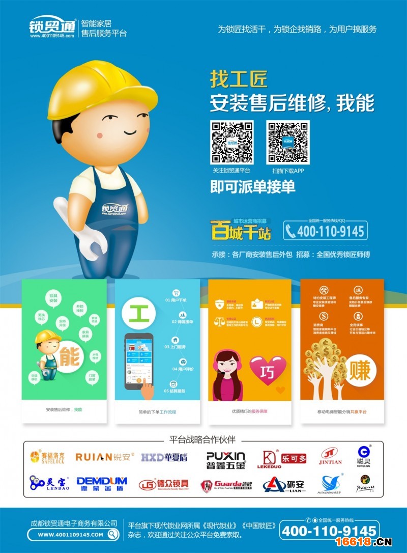 全國首家智能家居安裝售后服務平臺——鎖貿通APP發展迅猛,研發階段就獲得14家廠家和百位師傅簽約戰略合作伙伴,APP上線短短4個月,就得到全行業近100家知名廠商的認可并簽約安裝合作協議,與全國近3000位師傅達成合作共識,平臺執行完智能鎖安裝任務近1000例,發放合作師傅安裝費10多萬元;目前鎖貿通平臺10人的初創團隊搭建完成,軟件研發已經成型,“百城千站”全國城市運營商加盟模式即將啟動。在這里感謝所有師傅對鎖貿通平臺的支持與認可。
