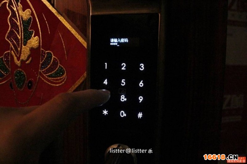 實際體驗輸入密碼、指紋操作。觸控屏幕采用電容式觸摸,屏幕由于采用了超硬涂層玻璃,不但抗指紋,而且即使用鑰匙用力砸也絲毫沒見受損。輸入的所有數字密碼全部都采用星號替代,這也是為了安全性。