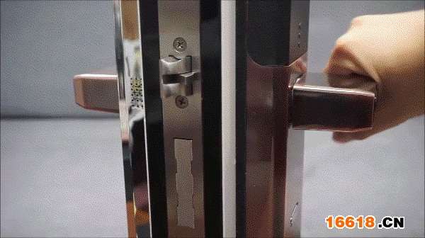 做了個動圖大家感受一下,使用鑰匙開門的時候也是需要執手下壓將鎖舌收回的。