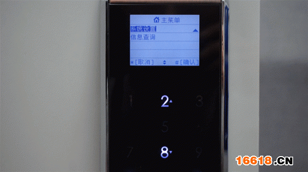 接通電源的第一件事就是更改初始密碼,得益于2寸大屏的高清顯示,以及清晰的語音提示,之后所有的操作都可以在智能鎖上完成。首先,我完成了管理員指紋的錄入,步驟也是比較簡單的,按下后面板上的菜單鍵進入設置界面,這時前面板數字按鍵區域的2和8對應顯示屏中的上下鍵,*號和#號則對應取消和確定,在操作上也是非常方便的。輸入出廠密碼6個0之后根據文字提示操作即可,正泰智能鎖支持創建3枚管理員指紋,以及107枚普通用戶指紋,可見正泰還是希望用戶都使用指紋開鎖。