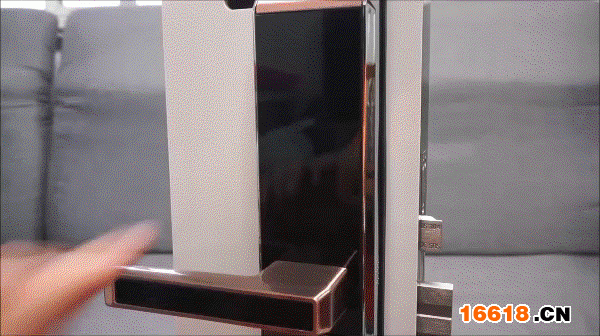 使用指紋開門的前提是需要激活門鎖,輕輕撥動指紋頭保護蓋,門鎖被激活,將手指放在指紋識別區域,稍等片刻,聽到語音提示就可以下壓執手開門了。