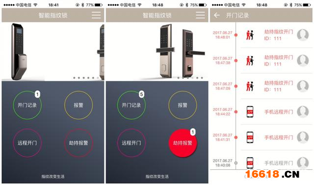 在指紋開鎖中,有個功能叫做劫持指紋,顧名思義,當有人使用這枚指紋打開門鎖時,系統會認為發生了劫持事件,并在第一時間進行推送報警。這里就引出了兩個關鍵詞,網絡和APP。智能鎖推送需要網絡,而手機接收推送則需要APP,通過掃描說明書上的二維碼下載注冊。