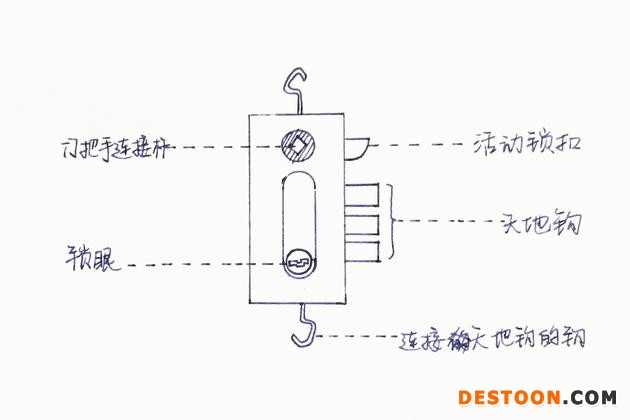 ink="" style="border: 0px none; vertical-align: middle; display: block; margin: 0px auto; max-width: 640px;" />如上圖所示,常見的防盜門就醬。中間的方塊是鎖的核心部分,上有把手、鎖芯,上下右分別有天地鉤(說人話就是幾個(gè)高強(qiáng)度鋼條,上下叫天地了,至于右邊的為啥也統(tǒng)稱叫天地鉤老楊也不是很能理解),主要是防止暴力拆門的。