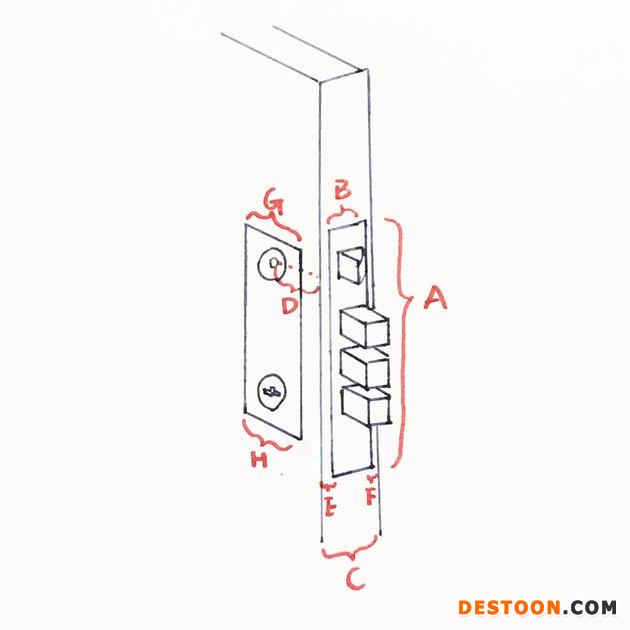 而智能門鎖的安裝實(shí)際上就是把機(jī)械核心換成包含WIFI等模塊的智能核心。一般購買之前要測量下下圖標(biāo)出的參數(shù)。