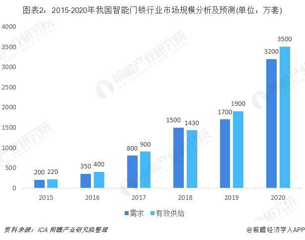 近幾年,在政府部門的政策支持以及人工智能技術的快速發展下,我國智能門鎖行業得到快速的發展。根據ICA聯盟發布的《2019中國智能鎖應用與產業白皮書》顯示,2018年中國智能門鎖的產量為1430萬套,需求量為1500萬套;此外,根據ICA聯盟預測,到2020年我國智能門鎖的需求量將達到3200萬套。根據前瞻分析,我國智能門鎖的需求提升主要是因為我國的居民生活消費水平的逐年提高和消費結構的逐步升級,居民對于功能型以及智能化的產品的需求也將逐漸提高。可見,我國智能門鎖行業的發展潛力以及空間依然巨大。