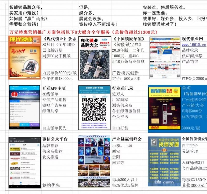 1、《現代鎖業》雙月刊雜志廣告全年6期,同步有PC手機電子版;