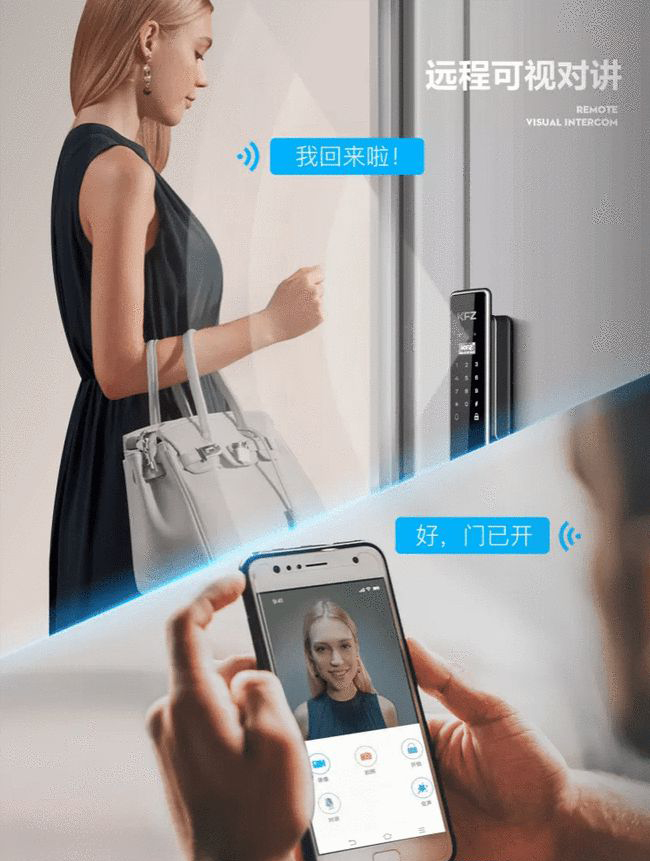 從行業現狀來看,除了3D人臉識別鎖之外,另一個發展比較迅速的產品就是視頻鎖。而KFZ智能鎖發布另外一款K6009B,正是視頻鎖。