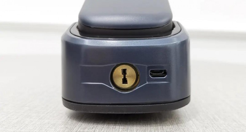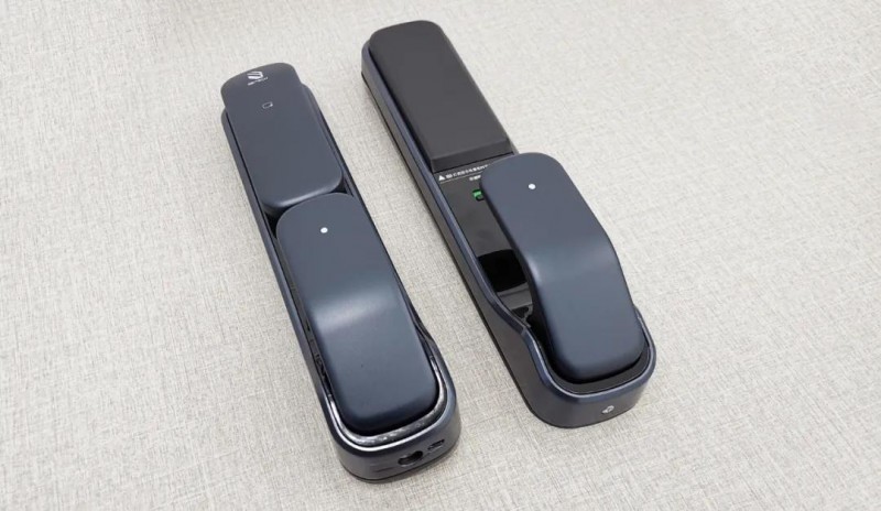 把手部分,必達T2采用懸浮式設計,把手中間有白色圓點,可定位背部隱藏式指紋區(qū),該部分為推拉設計。