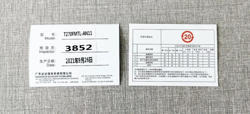 值得注意的是,產(chǎn)品包裝內(nèi)有檢驗信息卡和有害物質(zhì)標識卡,兩種夾片記錄了檢測員編號、時間、以及相關物質(zhì)的含量及環(huán)保年限,由此可以推斷,必達生產(chǎn)線配備有專門的品控。