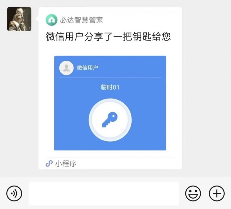 當用戶不在家時,如果有親朋好友臨時來訪,可以通過小程序發(fā)送臨時/一次性密碼,通過微信發(fā)送給好友,好友只需點擊小程序即可領取密碼,進行開鎖。