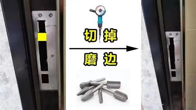 在門上粘毛條,讓鎖舌完整地穩(wěn)定地進入導向片的鎖舌孔里。