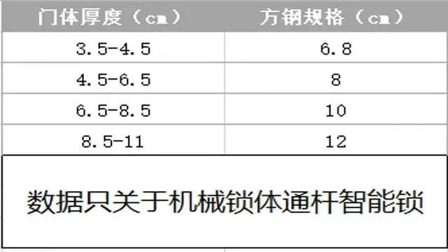 關(guān)于機械鎖體通桿智能鎖,門厚與方鋼的數(shù)據(jù)為:
