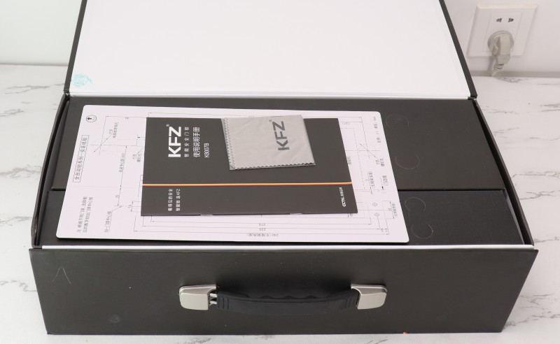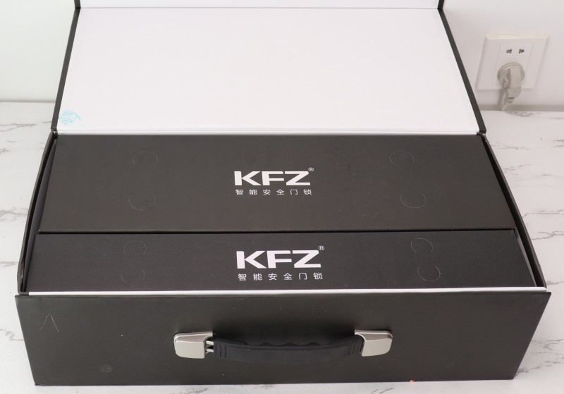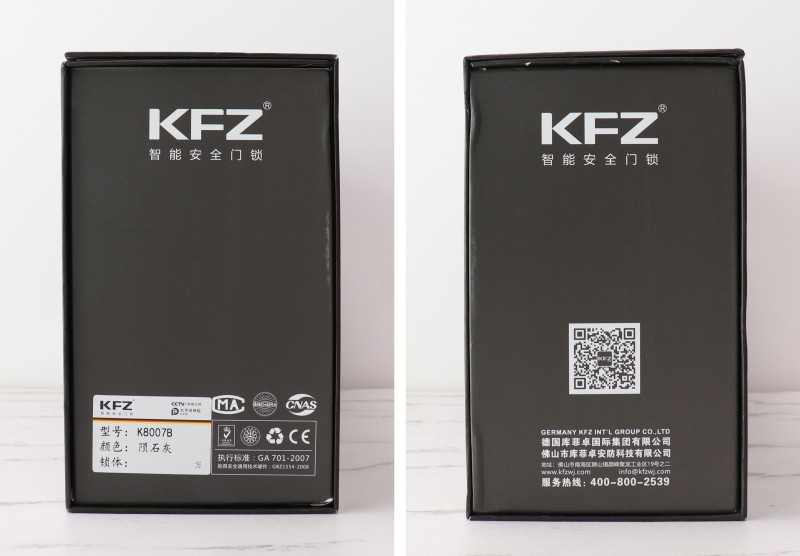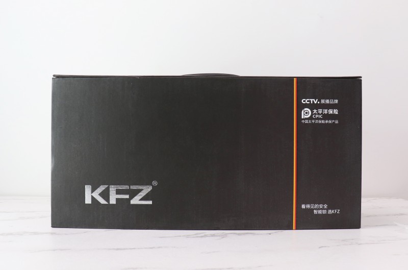 K8007B的外包裝延續(xù)了KFZ一貫的黑色簡約風格,辨識度非常高——包裝正面除了銀色LOGO、紅色和黃色的德國國旗元素,以及Slogan“看得見的安全,智能鎖 選KFZ”之外,并沒有多余的設(shè)計。同時,從外包裝還可以看出,KFZ智能鎖產(chǎn)品已由太平洋保險承保,讓用戶選購KFZ更安心。