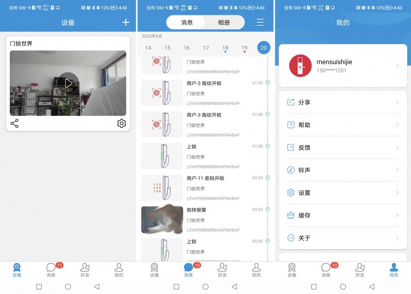 通過APP除了進行遠程可視對講及遠程解鎖之后,還可以查看門鎖開門日志(誰開的門,通過什么方式開的門,幾點積分開的門,可以清楚了解老人及孩子是否按時回家)及相冊內(nèi)容(主要為直播錄屏、截屏等圖像信息)。