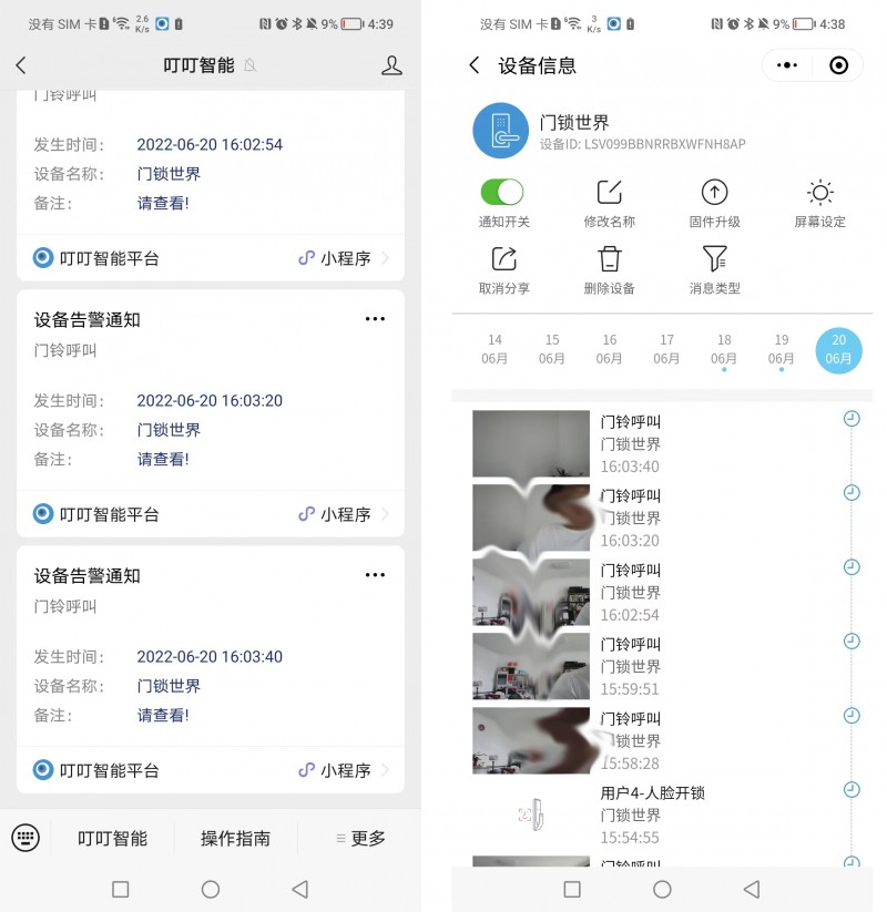 上述APP功能還可以通過“叮叮智能”小程序?qū)崿F(xiàn),同時“叮叮智能”公眾號亦可接收門鎖信息推送。