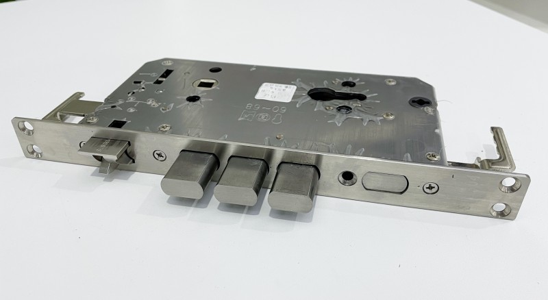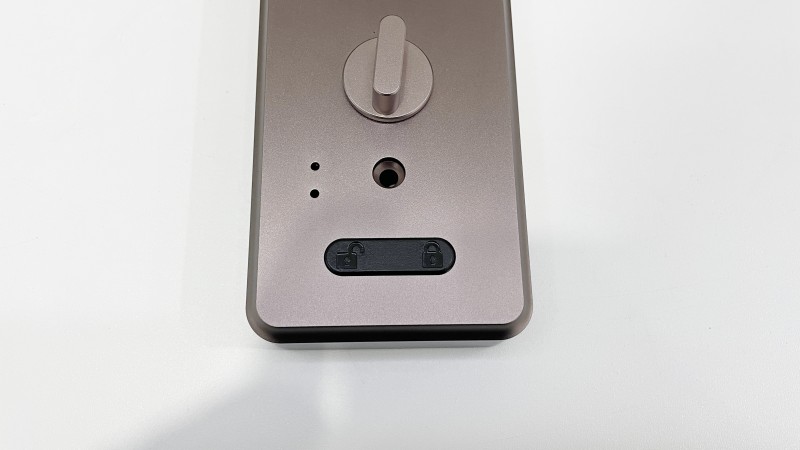 門鎖也搭載了電子開關鎖功能,按鍵在門鎖的最下方。