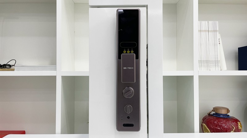 前面板最上方是門鎖的3D人臉+貓眼模組,可以看到,模組融于產品內部,保持了產品的整體性。