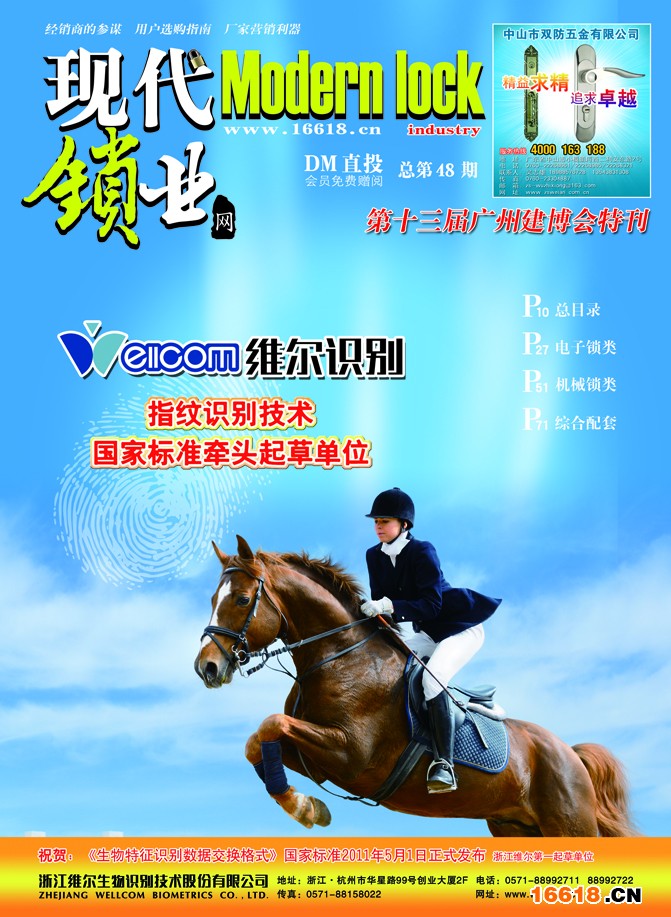 《現代鎖業》總第48期全新升級改版,重點表現在:全彩色印刷,內容全新編輯,啟動鎖貿通導般推薦體系!重新分類,更方便查閱。并定位于“經銷商的參謀,用戶購買指南,廠家的營銷利器!”歡迎下載!歡迎索閱,惠顧商業廣告!