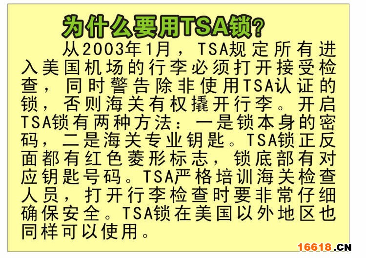⑸ 符合海關部門的規定,允許TSA的安檢人員對行李進行不破壞鎖的安全檢查和重新鎖定。