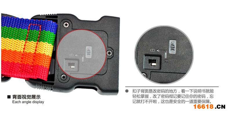 后來,人們發現使用帶有普通插扣的行李帶,會因人為或無意碰撞而開啟,嘉思特鎖業為此專門設計了貼心的行李織帶鎖,此系列避免了過往的容易開啟,插扣易夾手指等問題,并大膽啟用明快鮮亮的時尚色彩與款式,一掃過去的黑藍一統天下的沉悶。讓您在行李領取處眾多的箱包中,一眼便認出您的所愛。