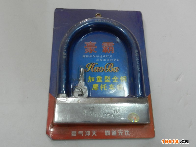 本產品是加重型全鋼摩托車鎖  鎖心是采取新發明的環繞型葉片鎖芯  防暴力開啟防鋸