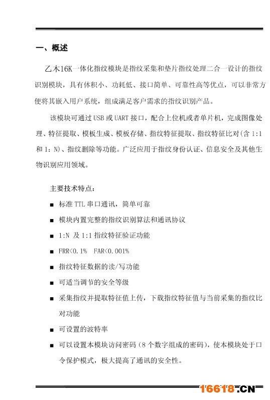 乙木16K一體化光學指紋模塊 嵌入式指紋模塊